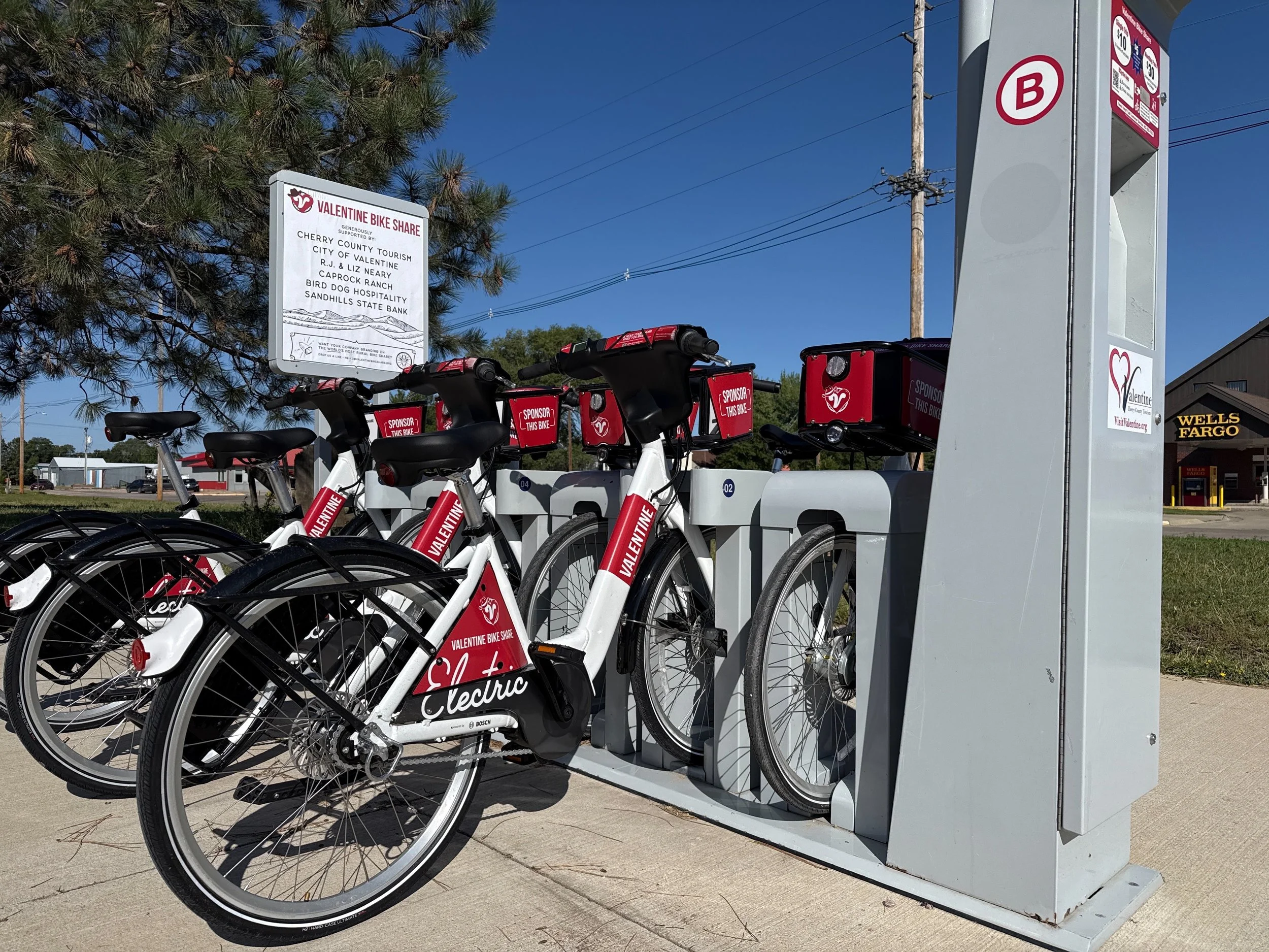 Valentine Bike Share operates out of a single station at 101 US-83 in Valentine, NE. Located next to the Comfort Inn and across from the Valentine Cowboy Trailhead, checkout and return bikes in one convenient spot. All rentals are facilitated through the easy-to-use BCycle mobile app.